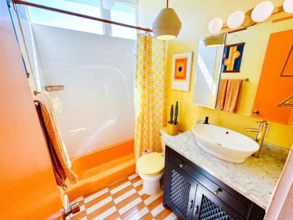 - “Absolutely lovely! I call this the dream version of my home. Colorful, cozy, & the perfect mid century vibe. Comfy beds, well stocked kitchen amenities & gorgeous lighting throughout the home. Every nook and cranny had a story to tell, there are no bad angles of this place. Thank you for the unforgettable stay!“